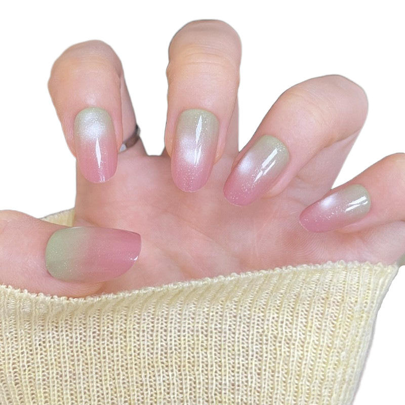 10 piezas de código-Uñas portátiles Ins Advanced Glitter Gradient Cat Eye Fototerapia Manicura hecha a mano Pegatinas de uñas extraíbles