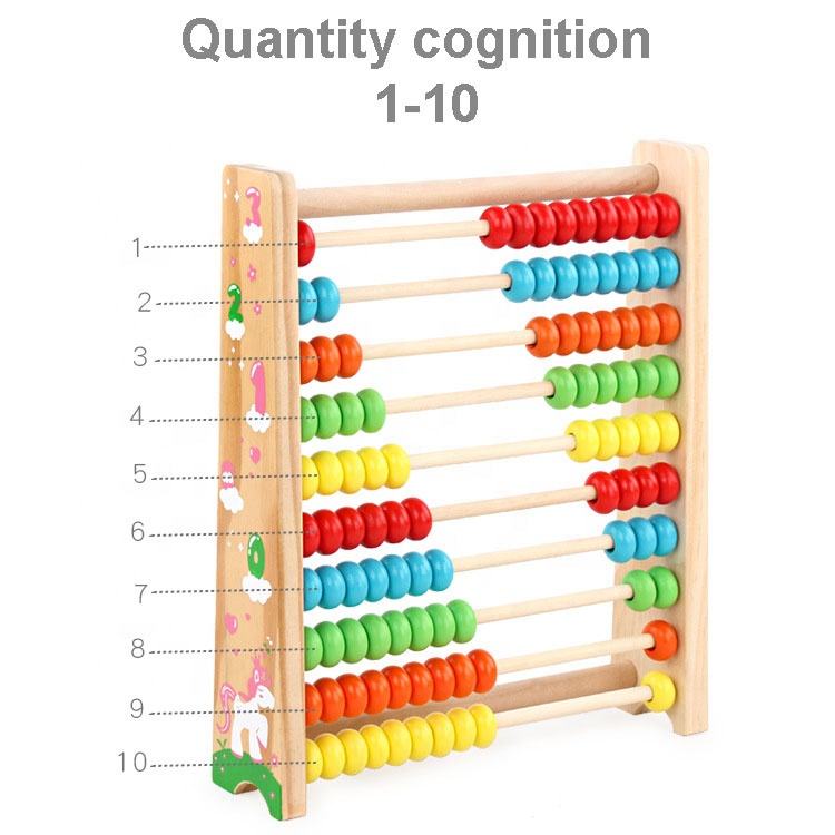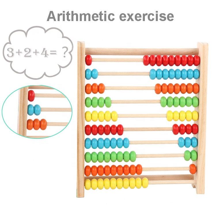 Ábaco de madera de 10 filas, juguete de matemáticas para contar, herramienta aritmética de aprendizaje de Educación Temprana, marco de cálculo de cuentas con cuentas multicolores