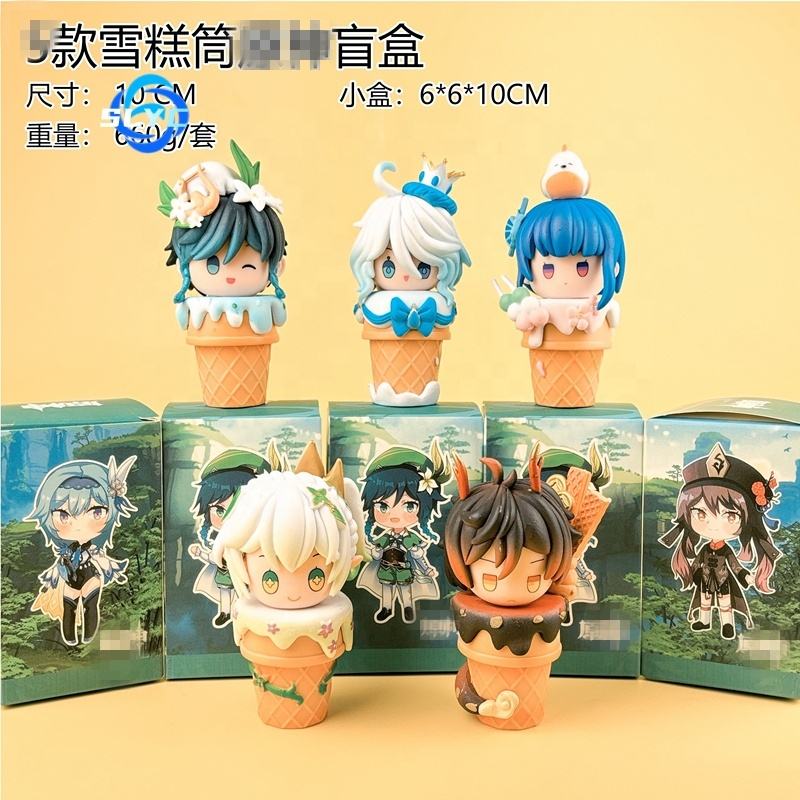 10 estilos Mini tamaño helado Genshined Manga figurita impacto Klee Zhongli sorpresa Anime figura misterio caja ciega Juguetes