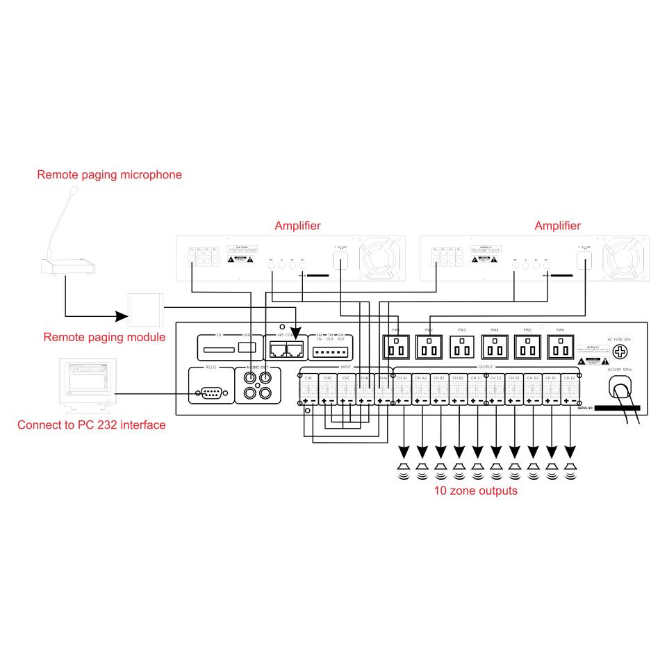 Sistema de megafonía de 10 zonas, controlador maestro todo en uno con MP3/USB integrados y temporizador programable