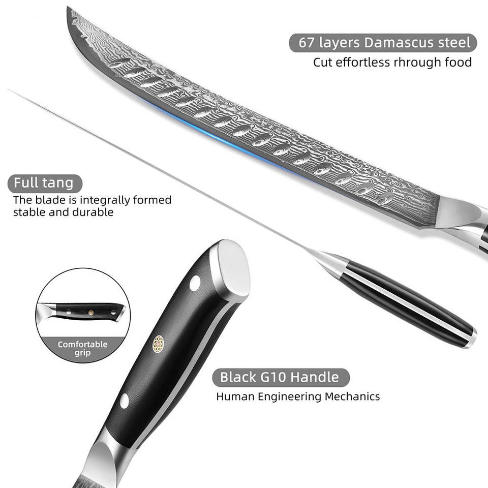 Material de la hoja:67 capas de acero japonés VG10 Damasco, acero de alto carbono.