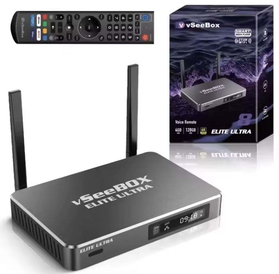 100% 2025 Streaming V-See Box Elites para Video 8K, Control por Voz, Sonido Envolvente, 3 Años de Garantía, Portátil, Sin Cuotas Mensuales, para Familias