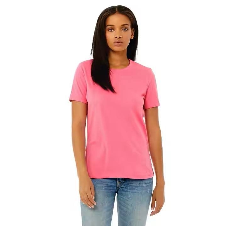 100% Airlume peinado y anillo hilado de algodón 32 Single 4,2 oz Charity Pink Womens Relaxed Jersey Camiseta de manga corta