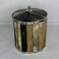 Cubitera de Hielo con Incrustaciones de Hueso 100%, Cubiteras para Bar y Vino, Cubitera de Cuerno para Bebidas, Cubitera de Acero con Tapa para Hoteles, Fiestas y Restaurantes