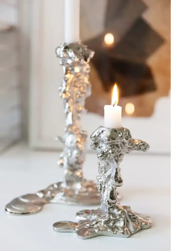 Portavelas de Pilar hecho a mano de Metal de latón 100% con acabado plateado último diseño para decoración del hogar