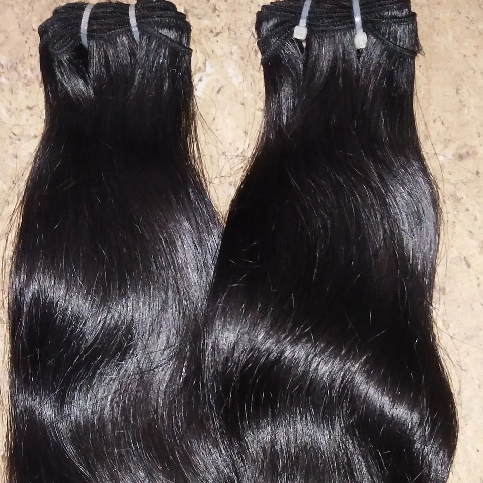 Extensiones de cabello Remy virgen brasileño 100%, estilo ondulado recto indio negro Natural, tejido de cabello virgen humano de alta calidad