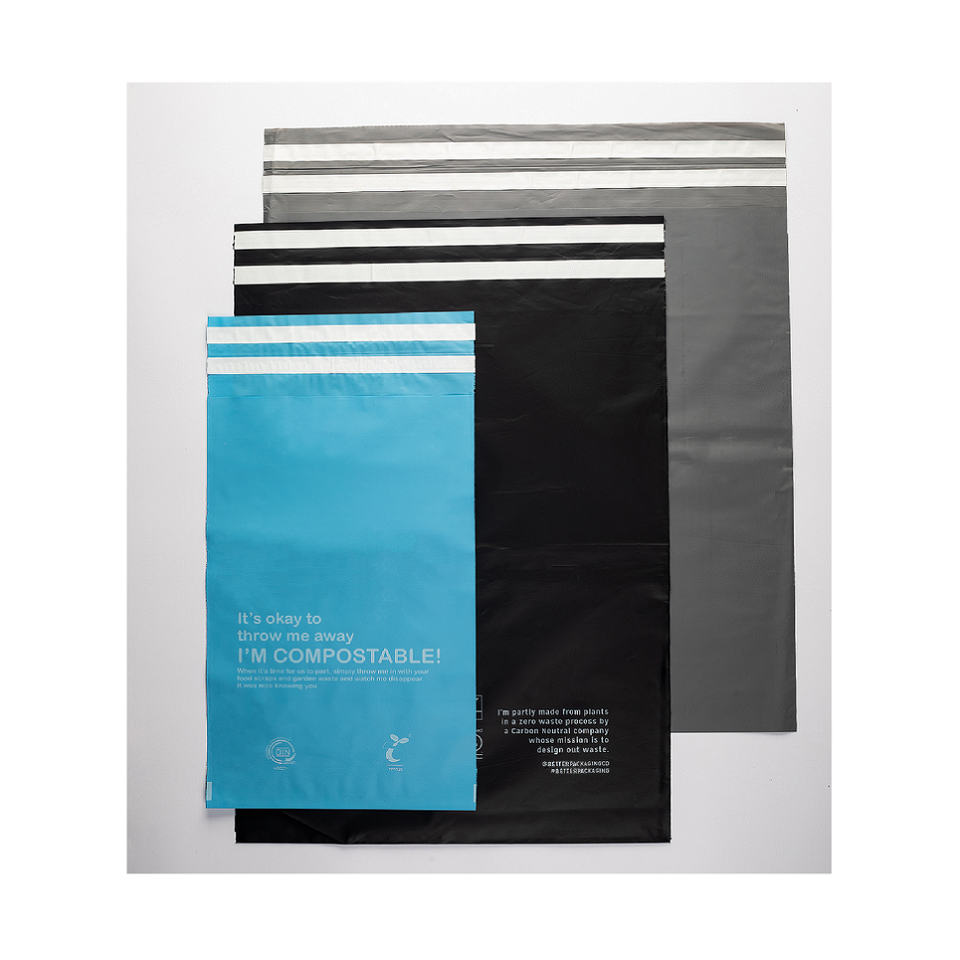 Bolsas de correo biodegradables ecológicas compostables con certificación BPI 100%, embalaje de plástico PBAT respetuoso con el medio ambiente
