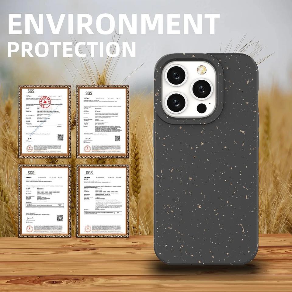 Funda a prueba de golpes para teléfono móvil con impresión Uv biodegradable ecológica de paja de trigo compostable 100% para iPhone 16 15 141 13 Pro Max