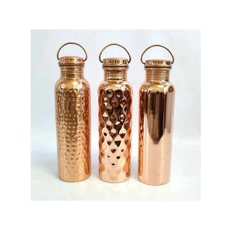 Botella de Agua de Cobre 100% de Primera Calidad con Acabado Martillado y Grabado