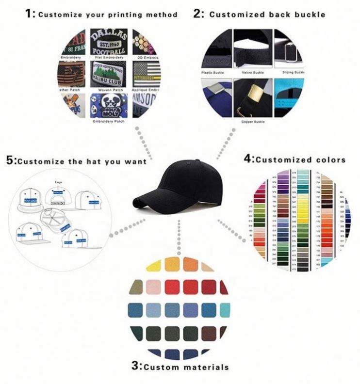 Posición del logotipo:Ala/visera, Panel frontal, Panel izquierdo, Panel derecha, Parte trasera curva