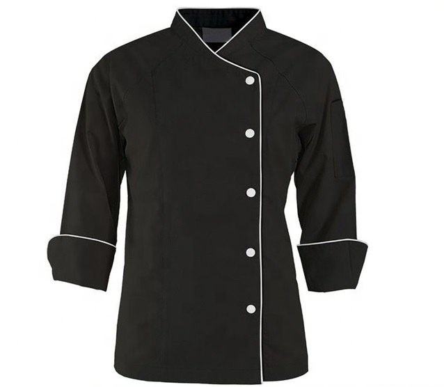 Abrigo de chef de sarga negro de algodón 100% para uso en hoteles uniformes profesionales para restaurantes