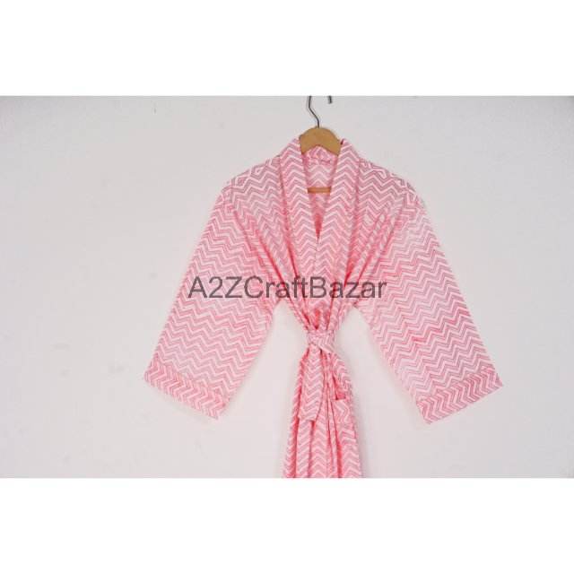 Kimono largo con estampado de bloques de algodón 100% para mujer, ropa de dormir Floral Hippie bohemio, bata de dama de honor, camisón, regalo de verano