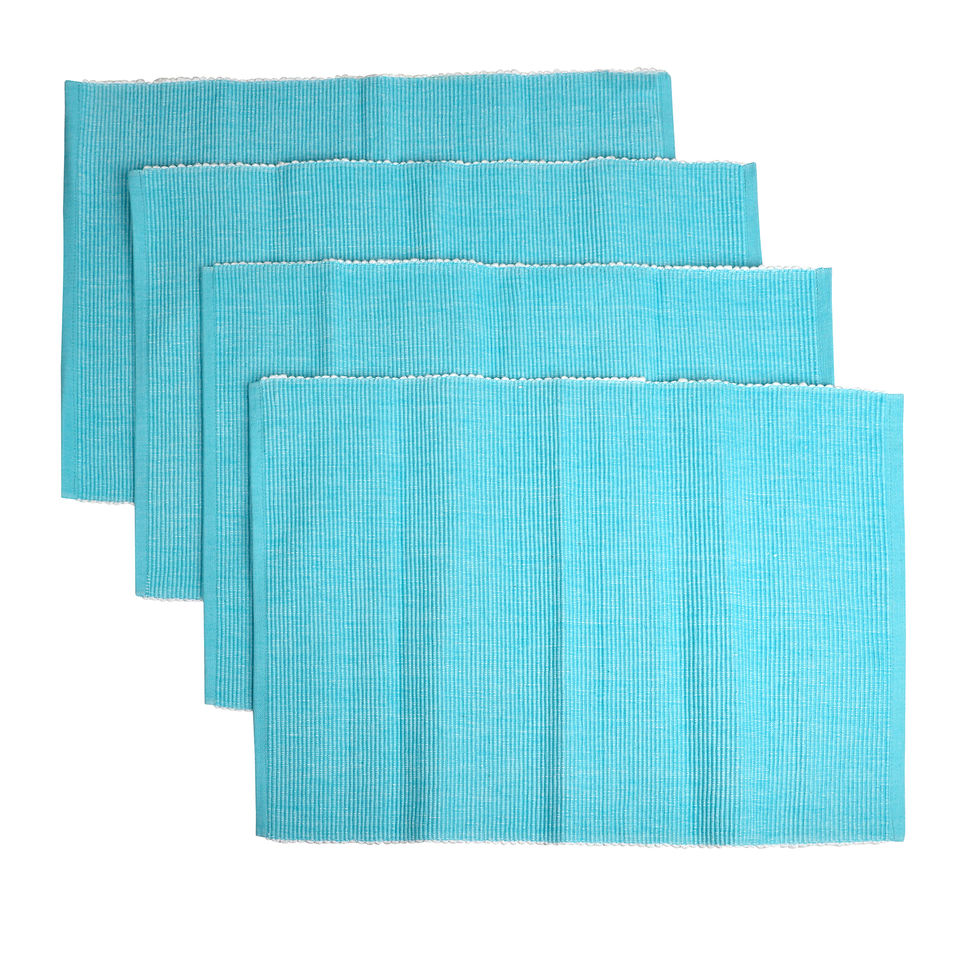 Manteles y Caminos de Mesa Modernos de Lujo 100% Algodón Azul con Diseño de Nervaduras, Cuadrados, con Patrón Sólido, para Comedor, Exteriores y Bodas, Tejidos de Secado Rápido
