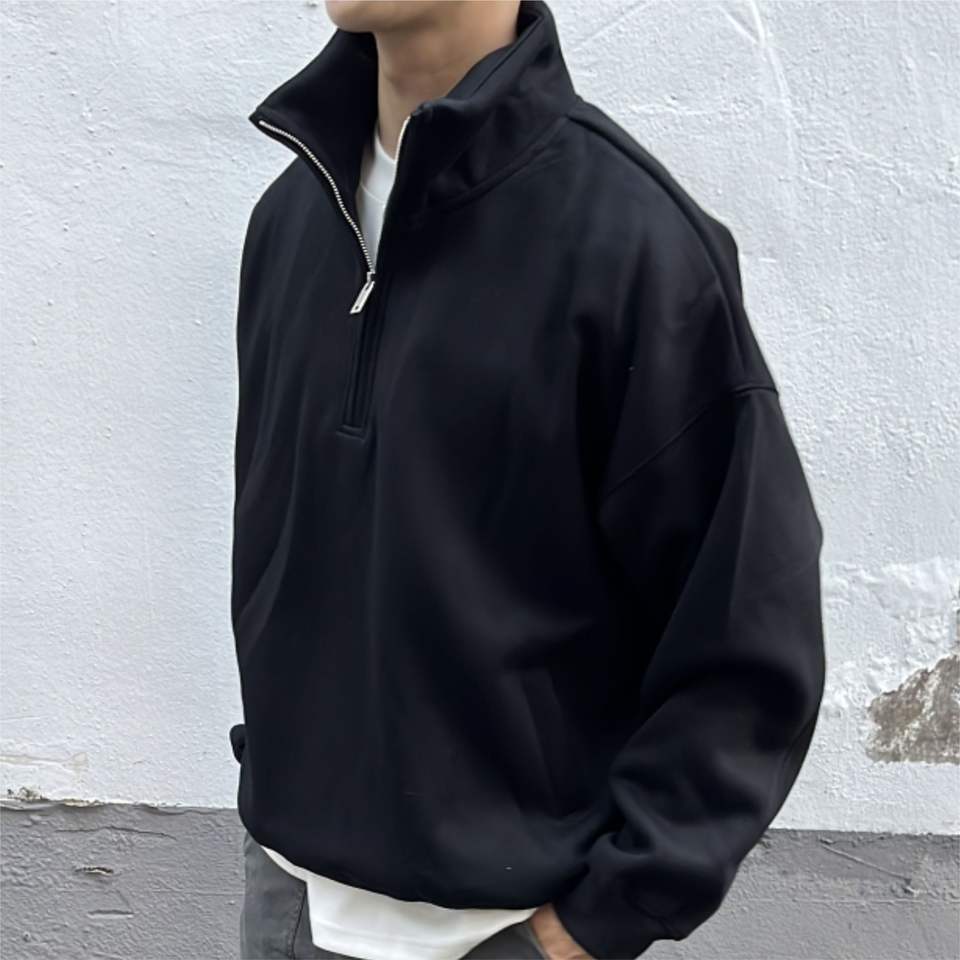 Jersey de lana de algodón 100% con cuello simulado, sudadera con media cremallera de alta calidad, diseño de diamantes de imitación, hombro caído de gran tamaño para hombres de invierno