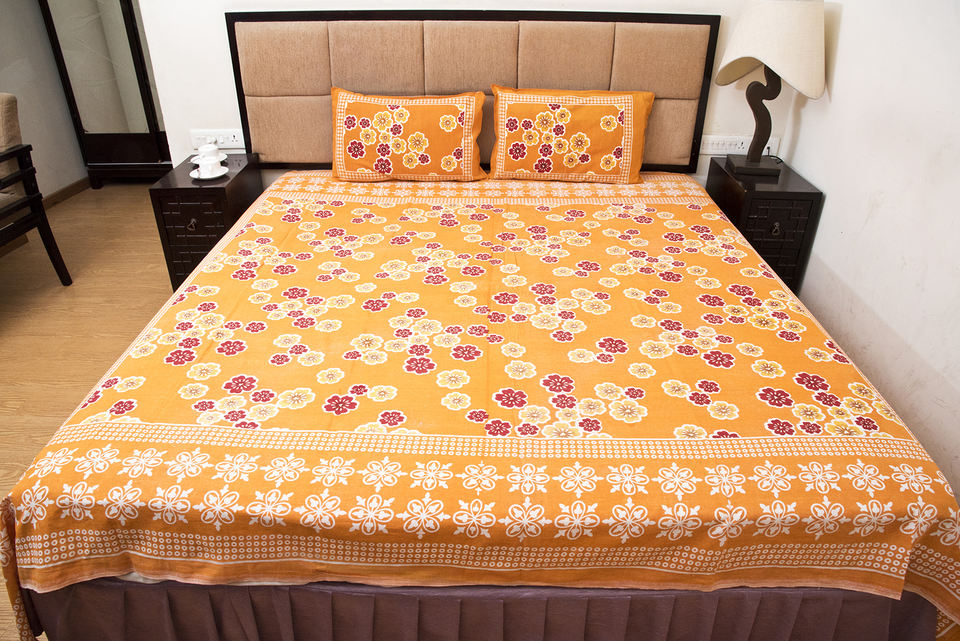 Sábanas Floral con estampado de algodón 100%, sábanas de calidad fina estampadas, sábanas de algodón con estampado Sanganeri amarillo, Sábana de doble bloque de mano