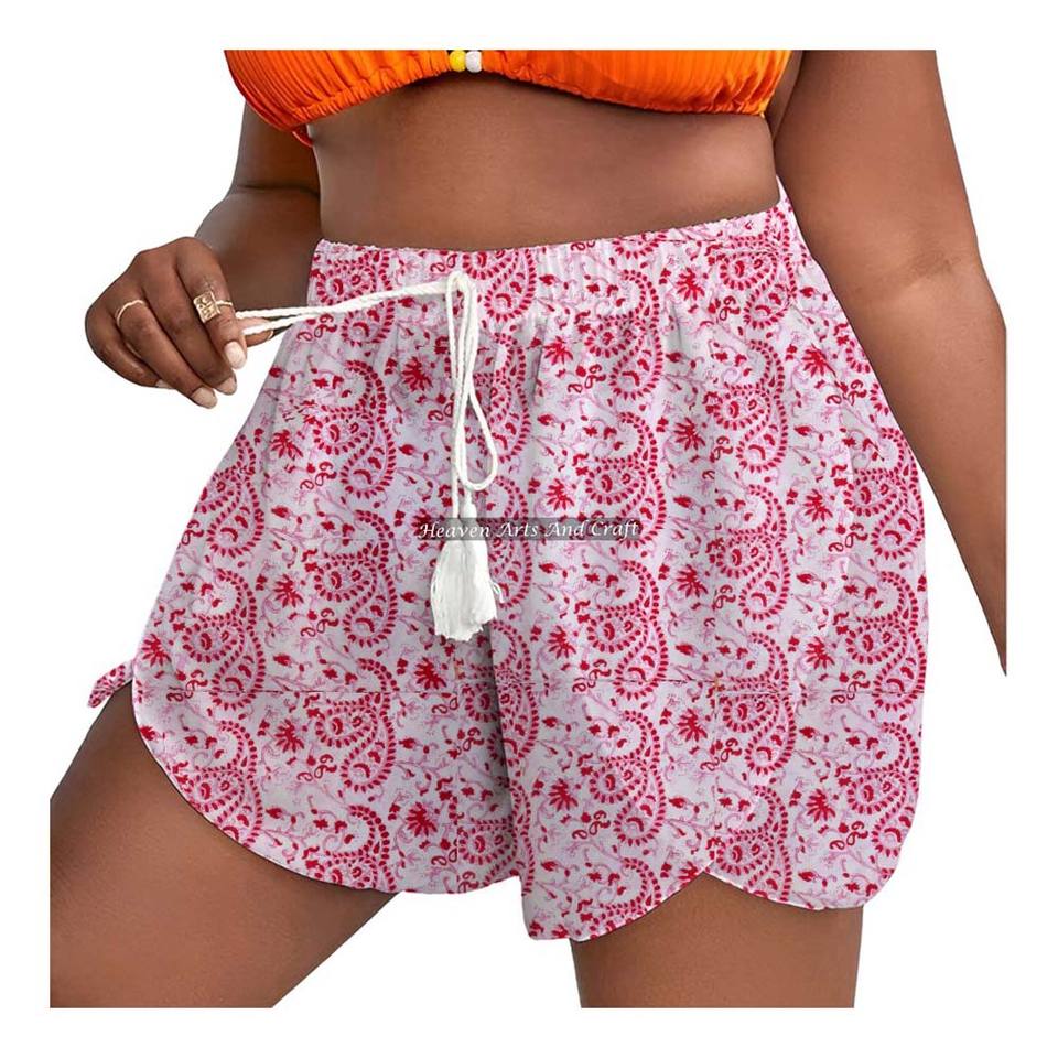 Nombre del producto:Pantalones cortos 100% algodón estampados a mano con cordón ajustable