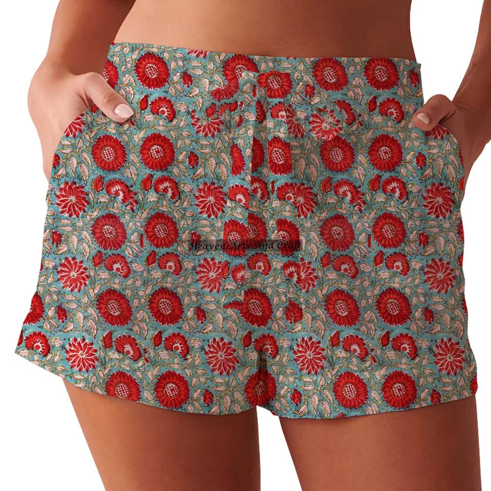 Shorts Mini de Algodón 100%, Estampado Floral Multicolor, Cintura Elástica, Estilo Casual, Todas las Tallas, para Vacaciones