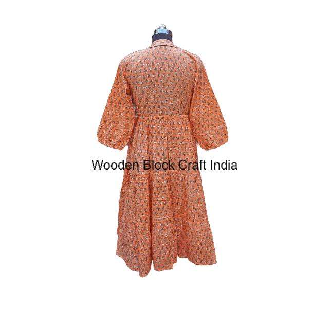 100% algodón bloque de mano impreso Himanshi Midi vestido para mujer hermoso estampado Floral A-Line fiesta vestido de verano hecho a mano