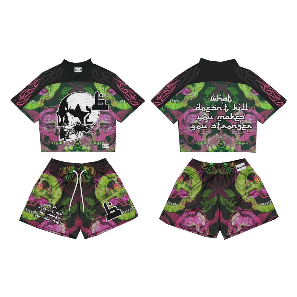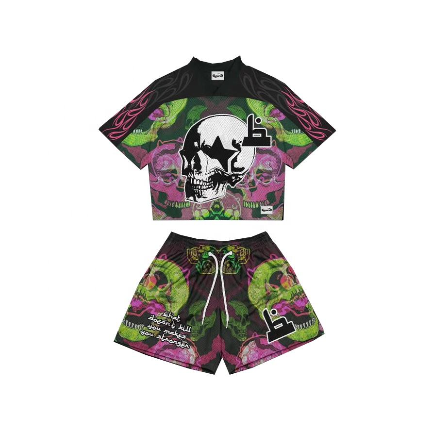 100% algodón pesado transpirable personalizable de talla grande de dos piezas para hombre Camiseta de gran tamaño conjunto de pantalones cortos estampado ecológico