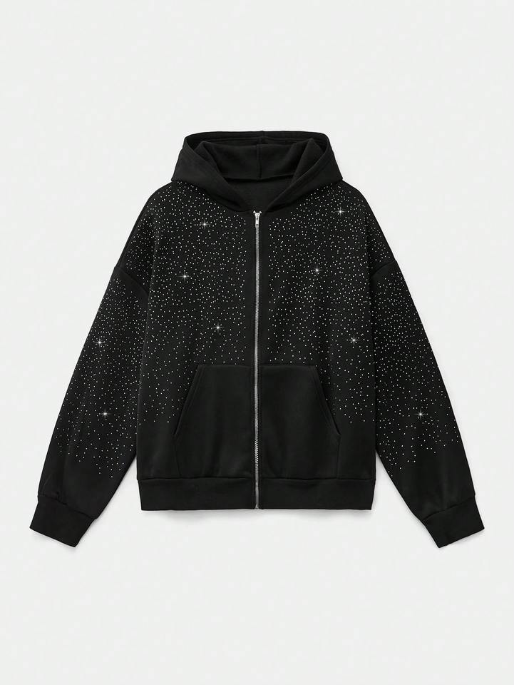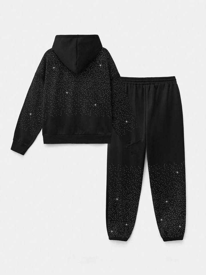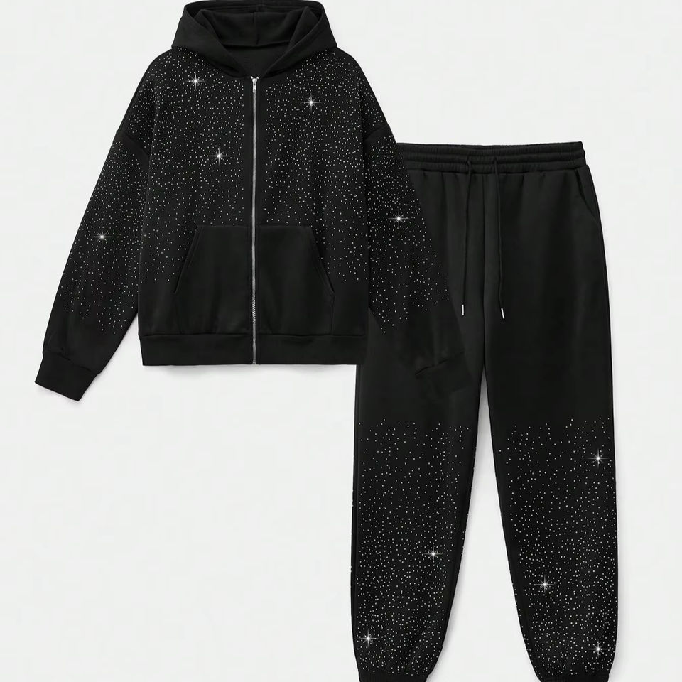 Conjunto Deportivo de Algodón 100% con Pedrería, Transpirable, con Sudadera con Cremallera y Pantalones Deportivos Personalizados, Nuevo Conjunto Deportivo de Moda