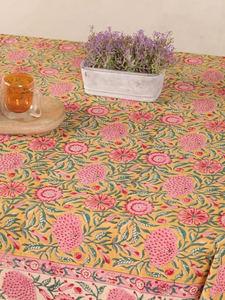 Camino de mesa de lino y algodón 100%, bloque de mano, estampado Floral para decoración del hogar, producto de tela de calidad