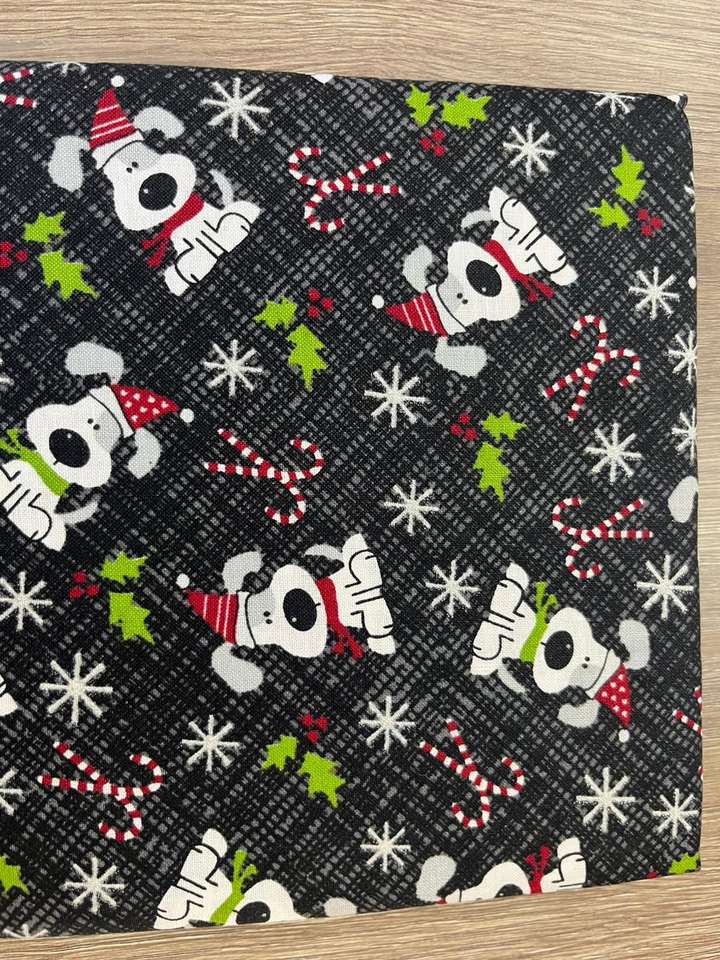 100% algodón multiusos festivo lindo perro con patrón tejido de tela negra caramelo con brillo duradero 112x300 cm estilo liso