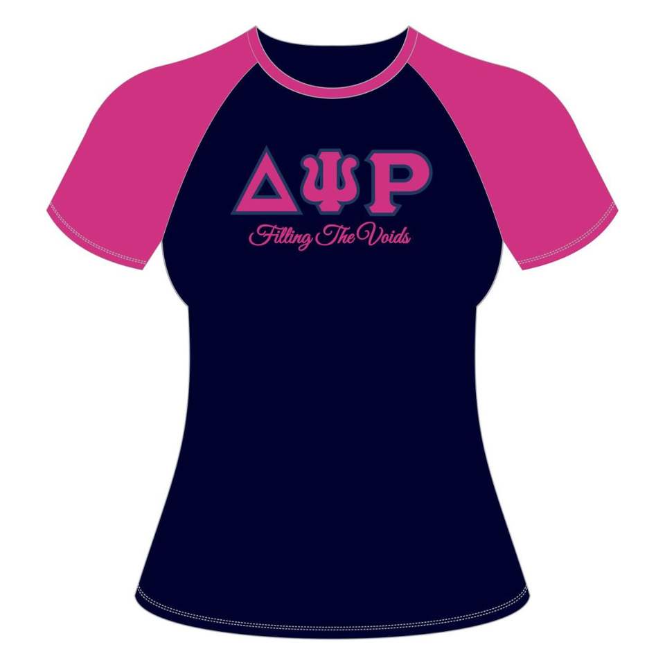 100 algodón azul marino Delta Psi Rho Sorority Camiseta de manga raglán llenando los vacíos ropa de vida griega cómoda camiseta informal