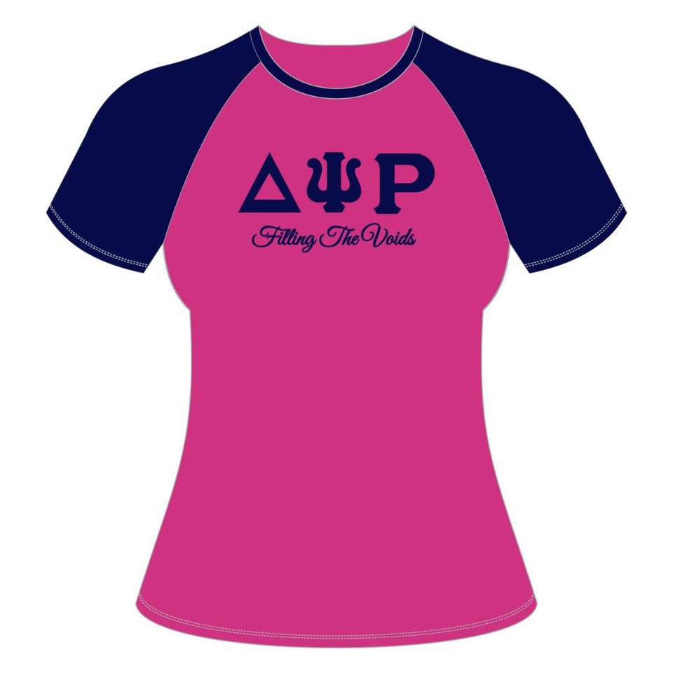 100 algodón rosa Delta Psi Rho Sorority Camiseta de manga raglán llenando los huecos ropa de vida griega cómoda camiseta informal