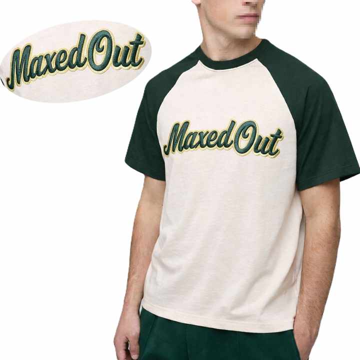 Camiseta de Hombre 100% Algodón con Manga Raglán, Logotipo Aplicado, Ribete en Contraste, OEM, Marca Privada, Proveedor Mayorista de Exportación