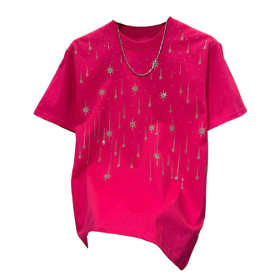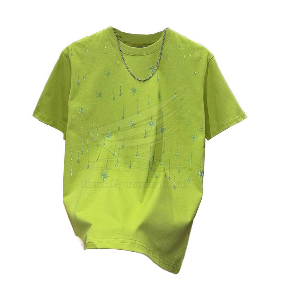Camiseta de Algodón 100% Personalizada con Pedrería, Transpirable, de Manga Corta, Cuello Redondo, Corte Regular, Ropa de Verano de Alta Calidad para Hombre