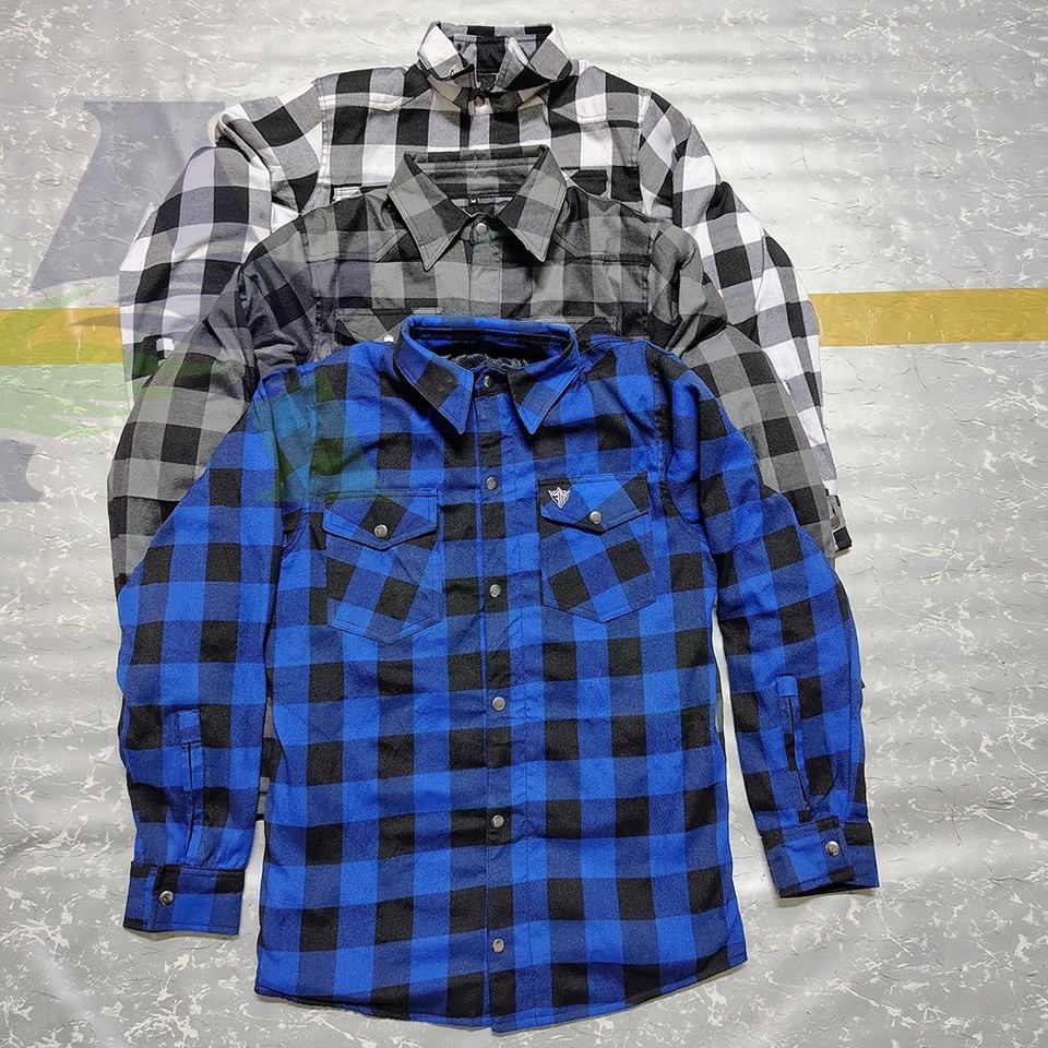 Camisa de franela de equitación de algodón 100% con almohadillas de protección de Nivel 2 aprobadas por CE forradas con tela protectora para motocicletas y carreras de automóviles
