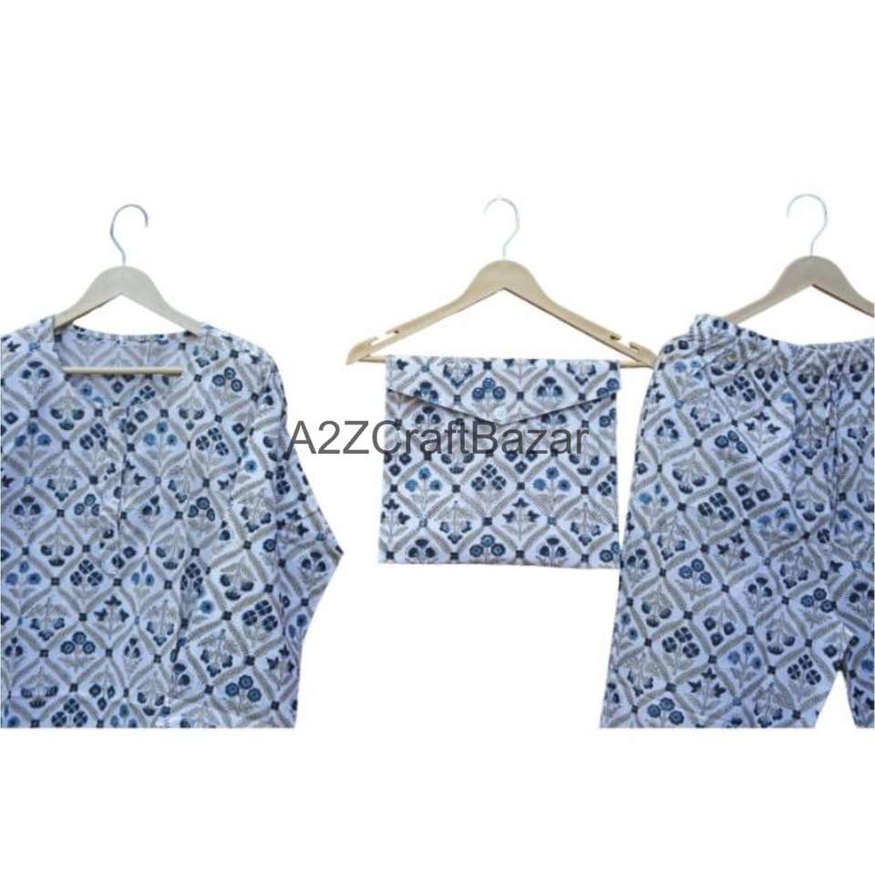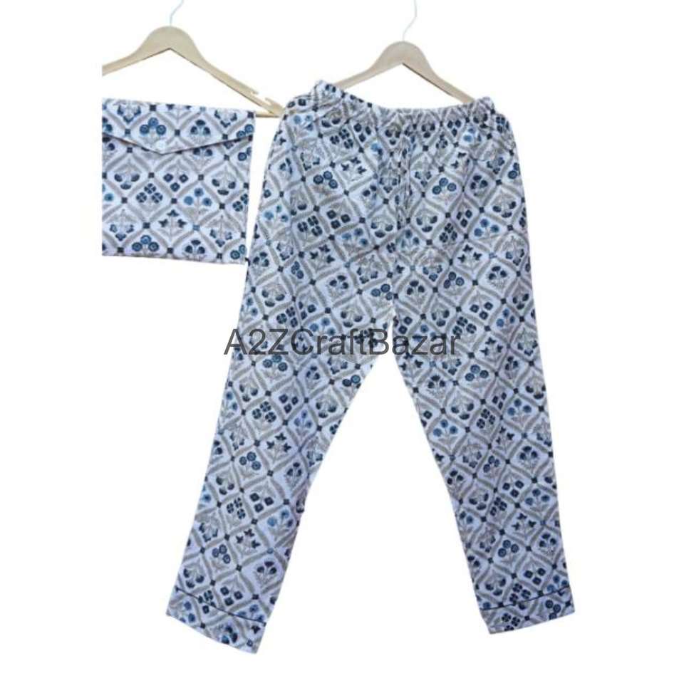 Conjunto de Pijama de Verano para Mujer, 100% Algodón, Cuello Redondo, Estampado Floral a Mano, Cintura Elástica