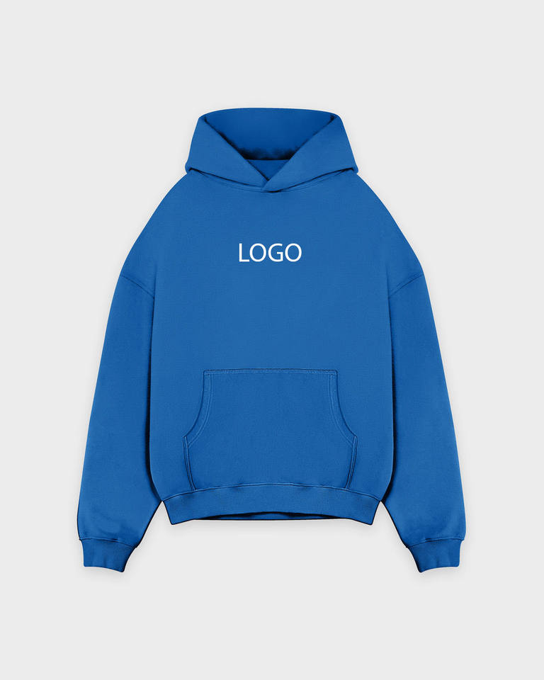 Sudadera de Hombre 100% Algodón Azul Rey, Estilo Holgado con Hombros Caídos, Cierre de Cremallera, Bolsillo Tipo Canguro, Forro Polar para Invierno, 380/410 GSM, Tinte Liso