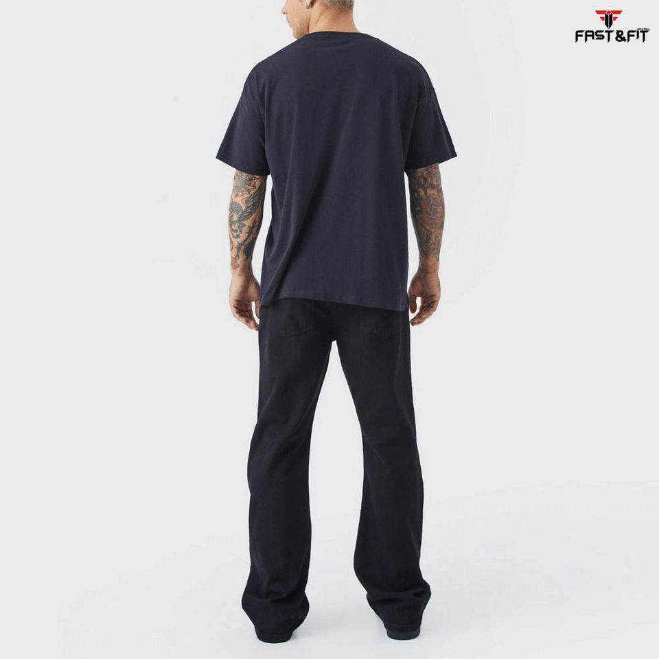 Camisetas de Hombre de Talla Grande, 100% Algodón, Estampado de Letras, Cuello Redondo, Transpirables, de Secado Rápido, Color Negro