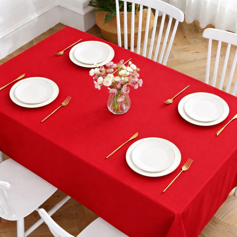 Mantel Rectangular Rojo Sólido 100% Algodón, Lavable, para Mesa de Comedor, para Hotel, Restaurante, Bodas y Uso Doméstico