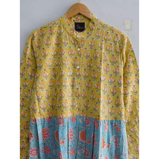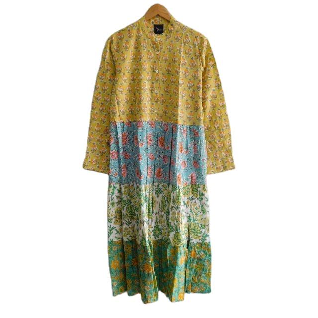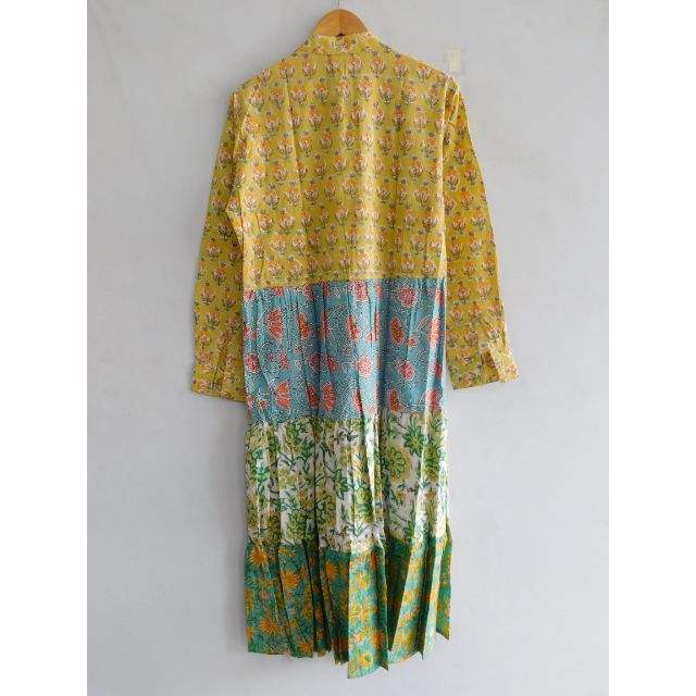 Vestido Maxi Formal de Verano 100% Algodón Transpirable y Lavable, Multicolor, con Parches Florales, Botones y Estampado Hecho a Mano