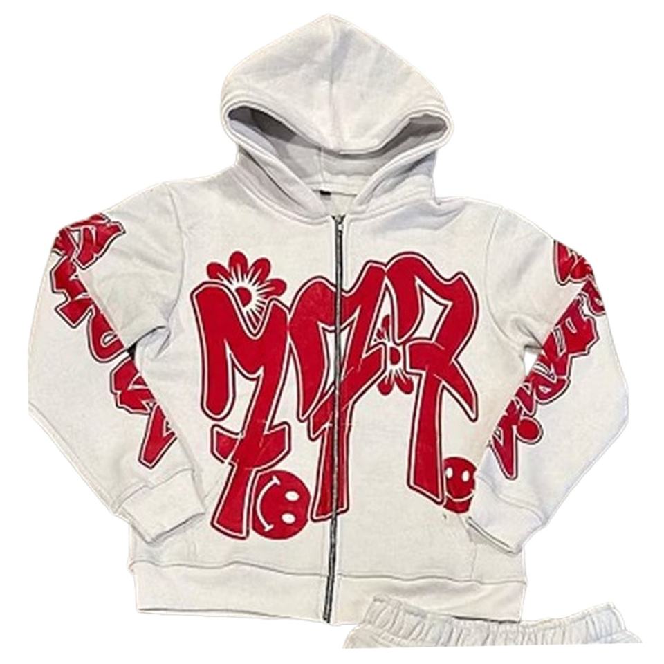 100% algodón grueso polar 500 GSM chándales High Street moda Proveedor de Ropa logotipo personalizado Allover serigrafía Zip Up sudaderas con capucha