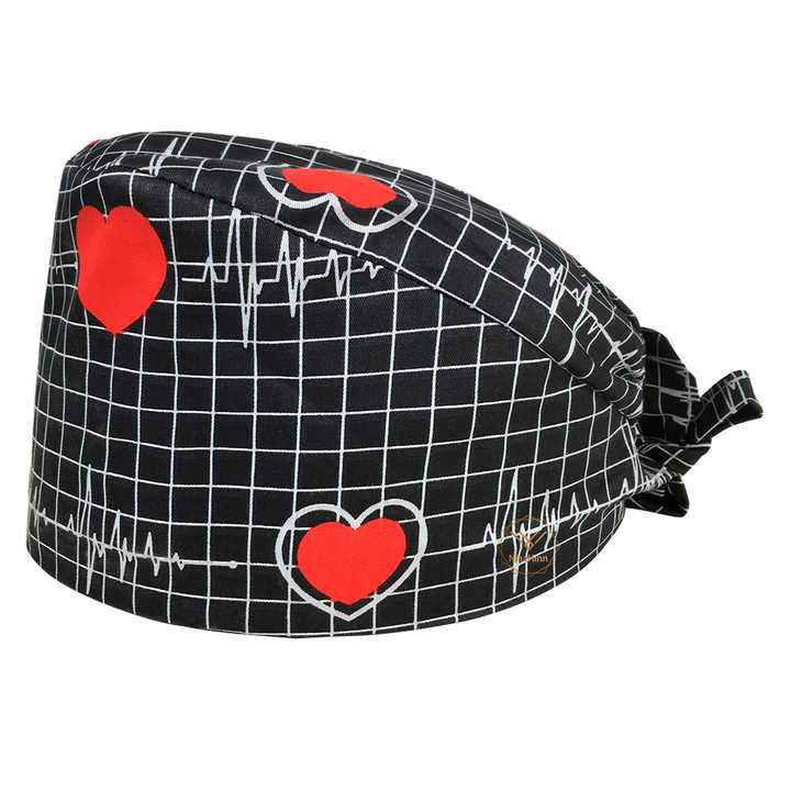 Gorra de trabajo de algodón 100% con botón y banda para el sudor, sombreros Bouffant de latido del corazón ajustables, gorras de enfermera para hombres y mujeres