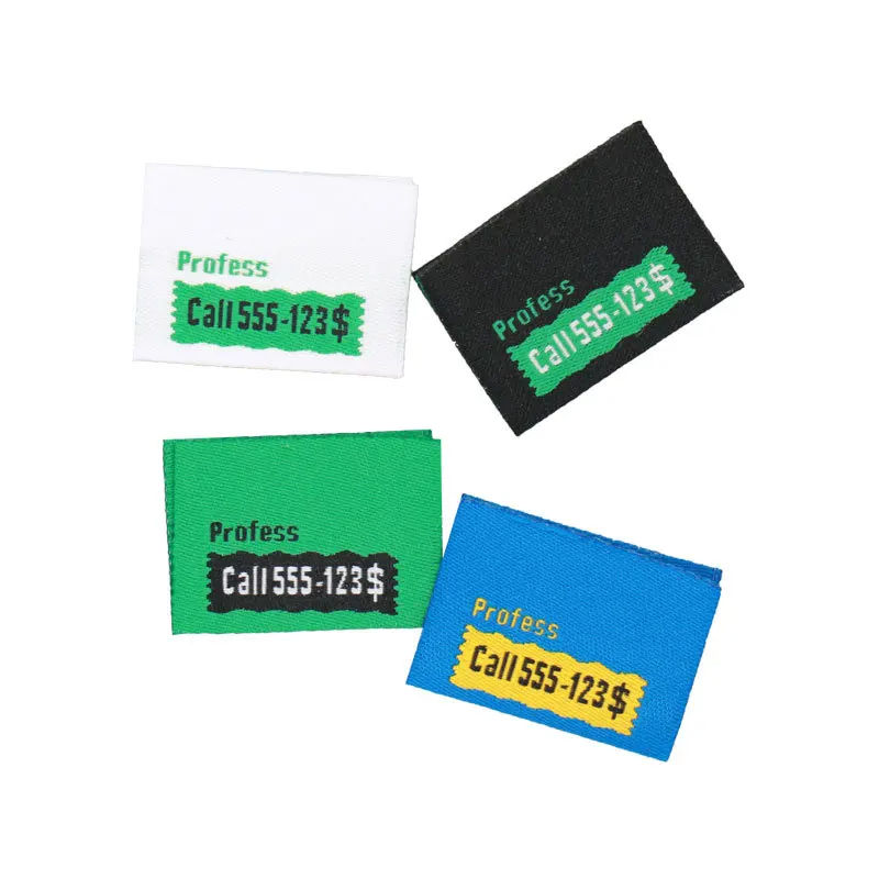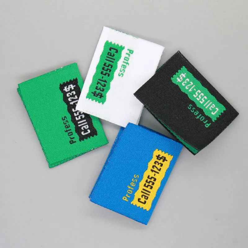Etiqueta tejida de ropa de marca personalizada 100%, alta calidad, 2x5cm, etiqueta cuadrada de tela para ropa, pliegue final/Logotipo de pliegue central caliente
