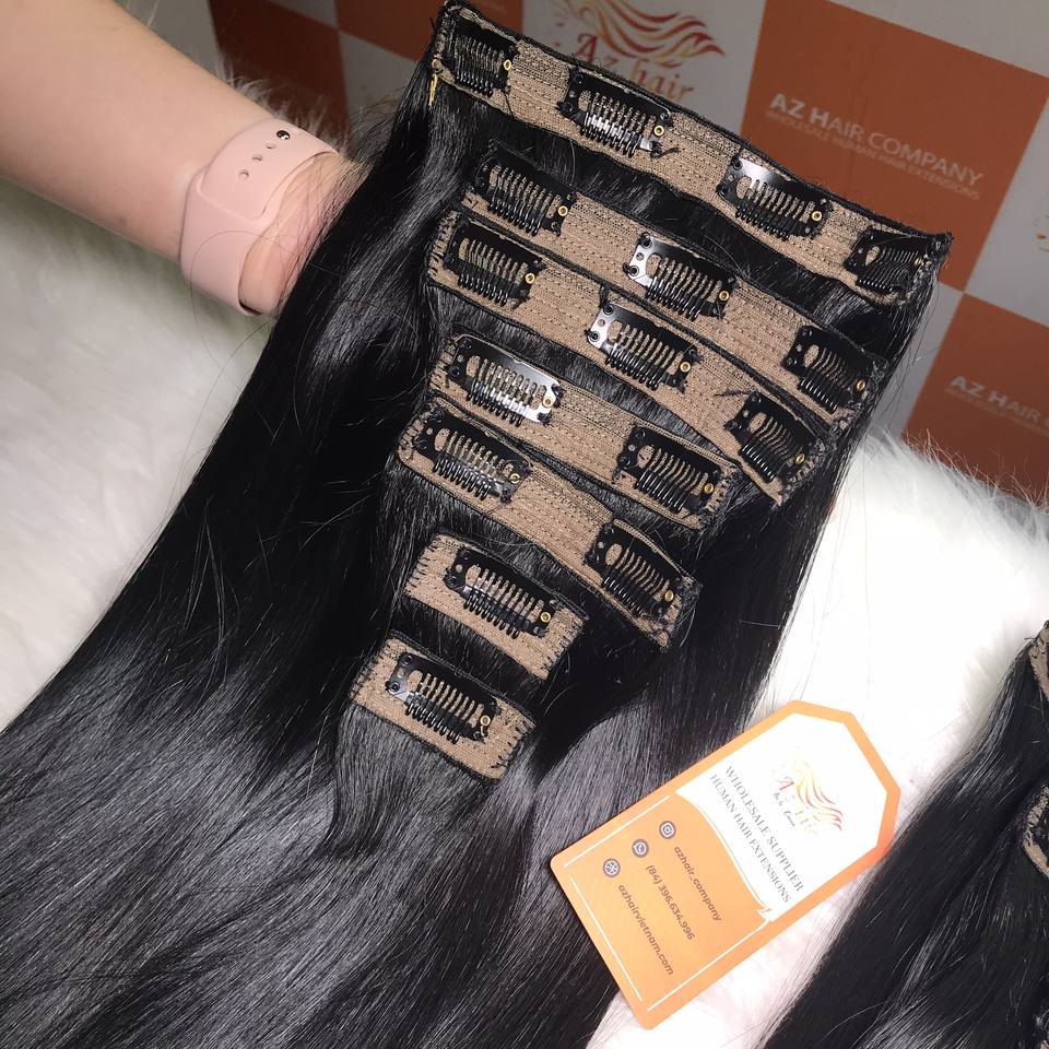 Clip virgen alineado con cutícula 100% en extensiones Cabello humano Seda Recto Doble dibujado Clip de cabello vietnamita en extensión de cabello