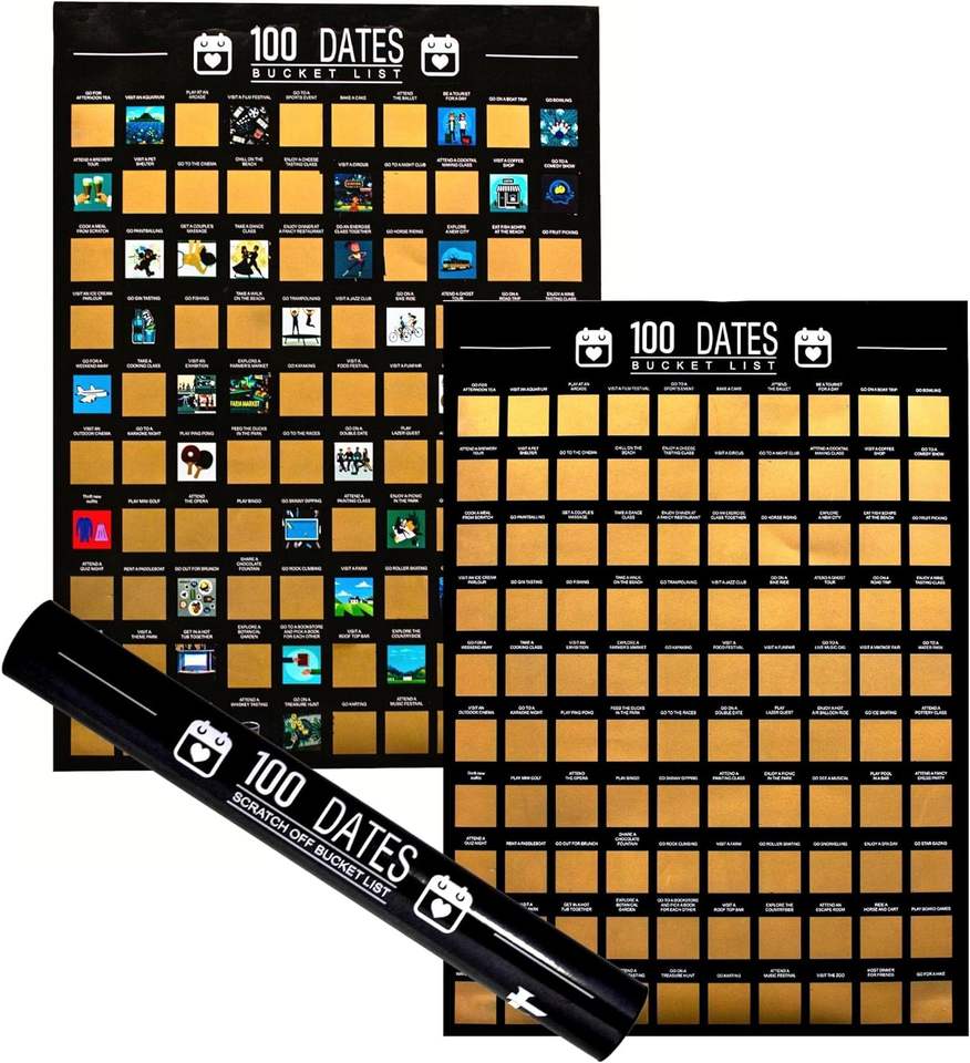 Póster Rasca y Gana de 100 Citas, Ideas para Citas, Idea de Regalo para Parejas, Regalo de San Valentín para Novio o Novia