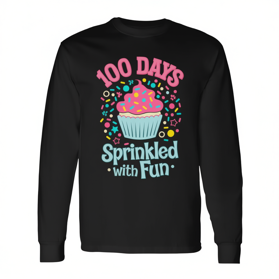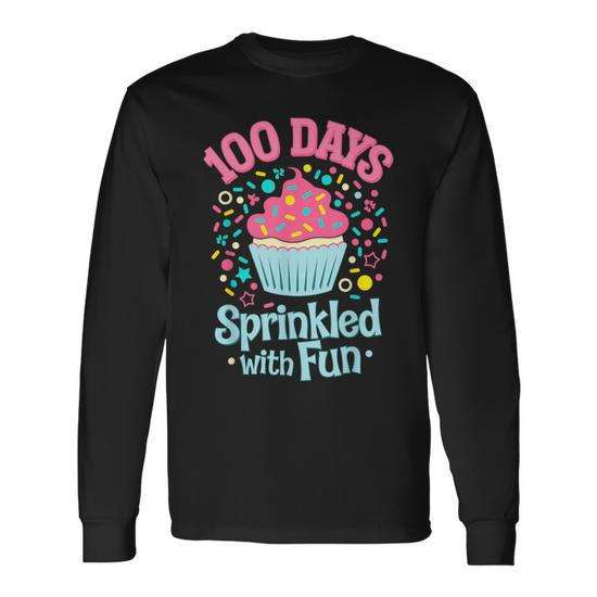 Camiseta de manga larga con estampado de cupcakes y la frase '100 Days Sprinkled With Fun'