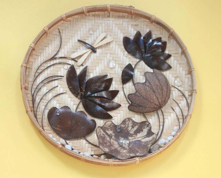Nombre del producto:Concha de coco incrustaciones en la bandeja de bambú Imagen