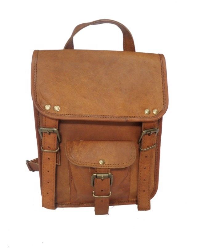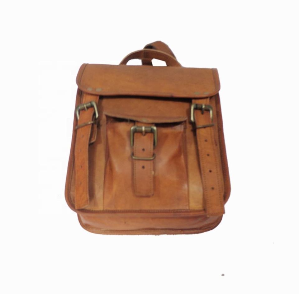 Mochila universitaria para ordenador portátil de viaje de Color marrón de cuero genuino 100%, bolso de hombro con bolsillo y muchas hebillas para hombres y mujeres, regalos personalizados