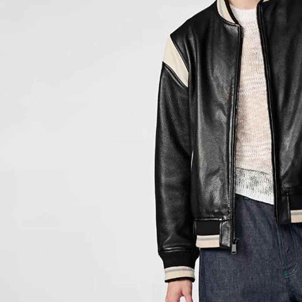 Chaquetas universitarias de calidad superior para hombres genuinos 100%, cuello levantado con logotipo frontal, lona, dos tonos, precio razonable