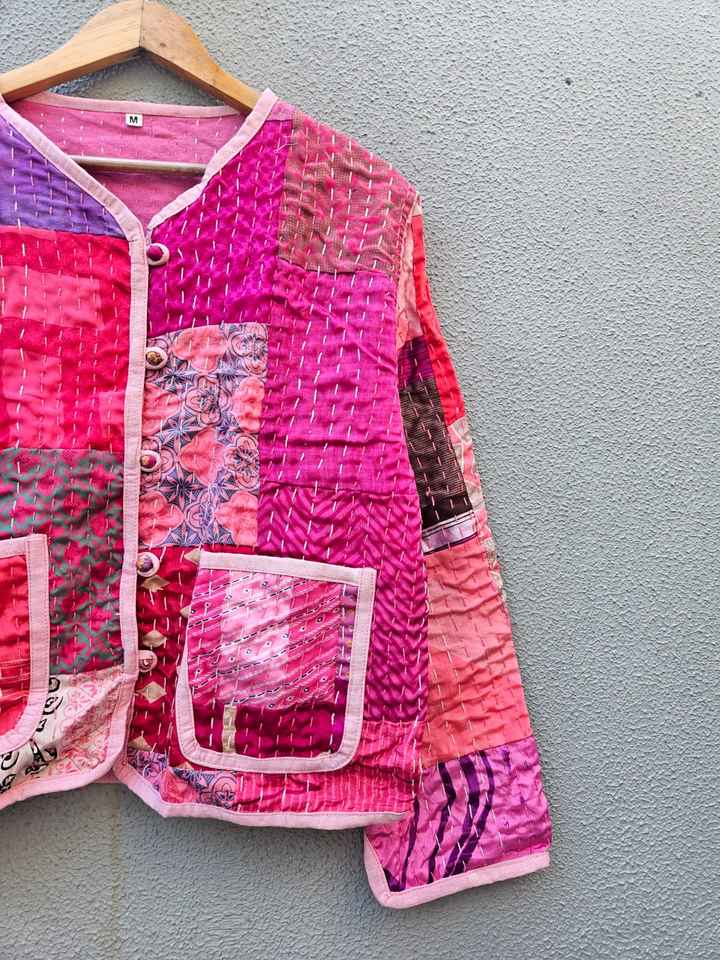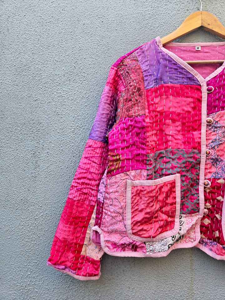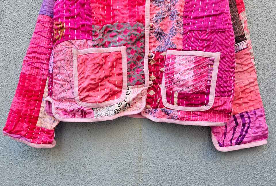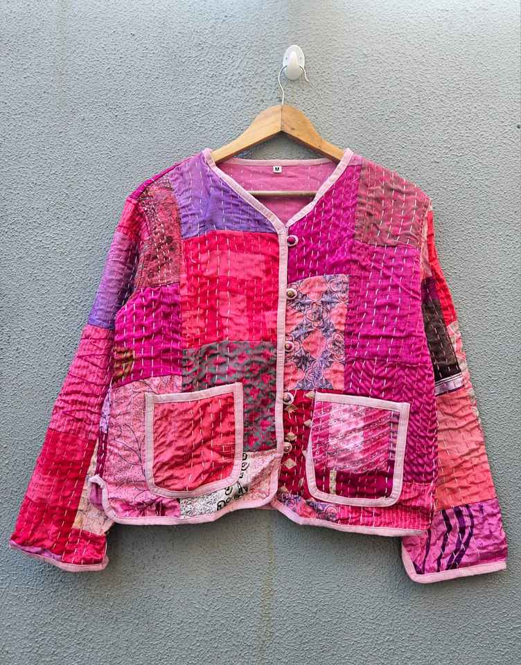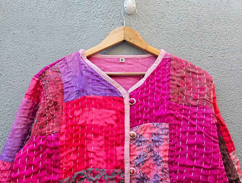 Abrigo Casual de Invierno para Mujer, 100% Algodón con Parches Hechos a Mano, Acolchado, Manga Larga, Estampado Floral, Cierre de Cinturón, Suave y de Secado Rápido