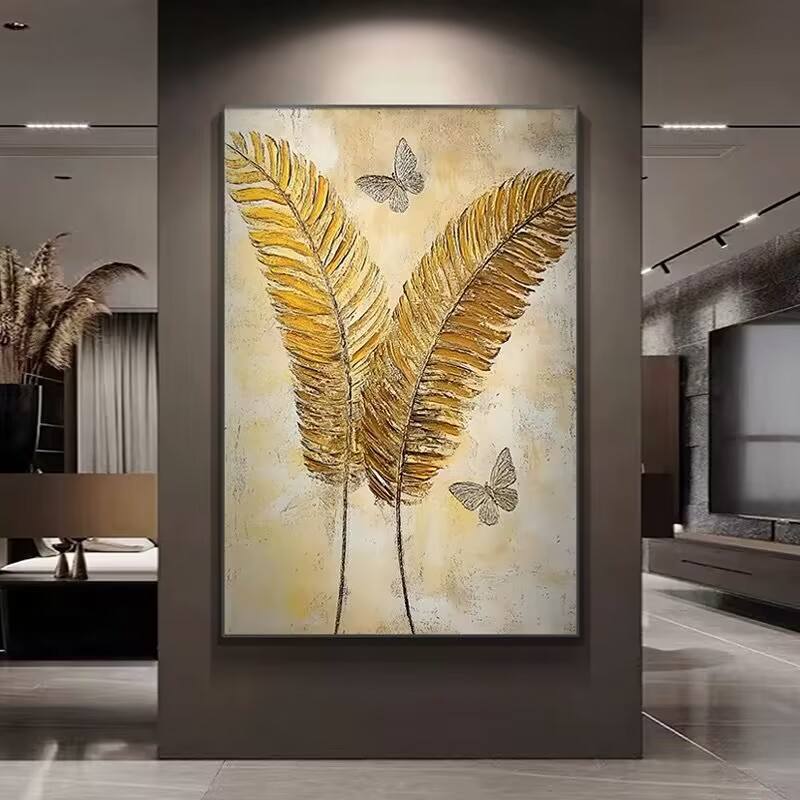 100% cuadro acrílico moderno pintado a mano decoración de pared abstracta hoja de oro lienzo de pintura al óleo hecho a mano