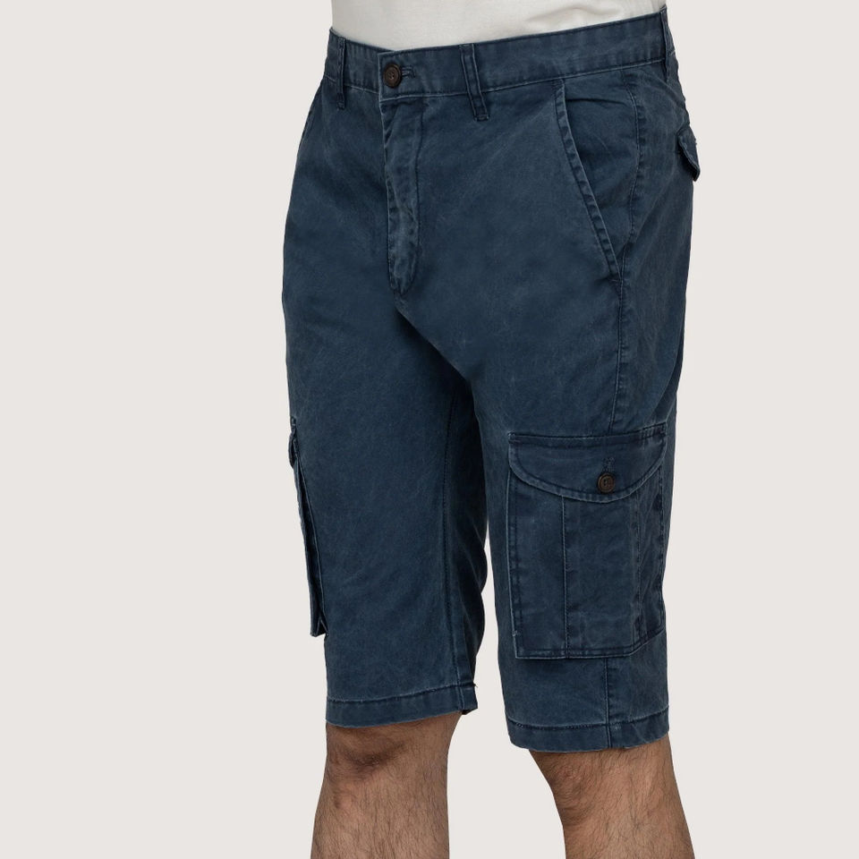 Pantalones cortos Cargo personalizables de algodón de alta calidad 100%, lavado con enzimas, bordado 3D azul marino, cierre con cordón, ajuste Regular para hombres medianos