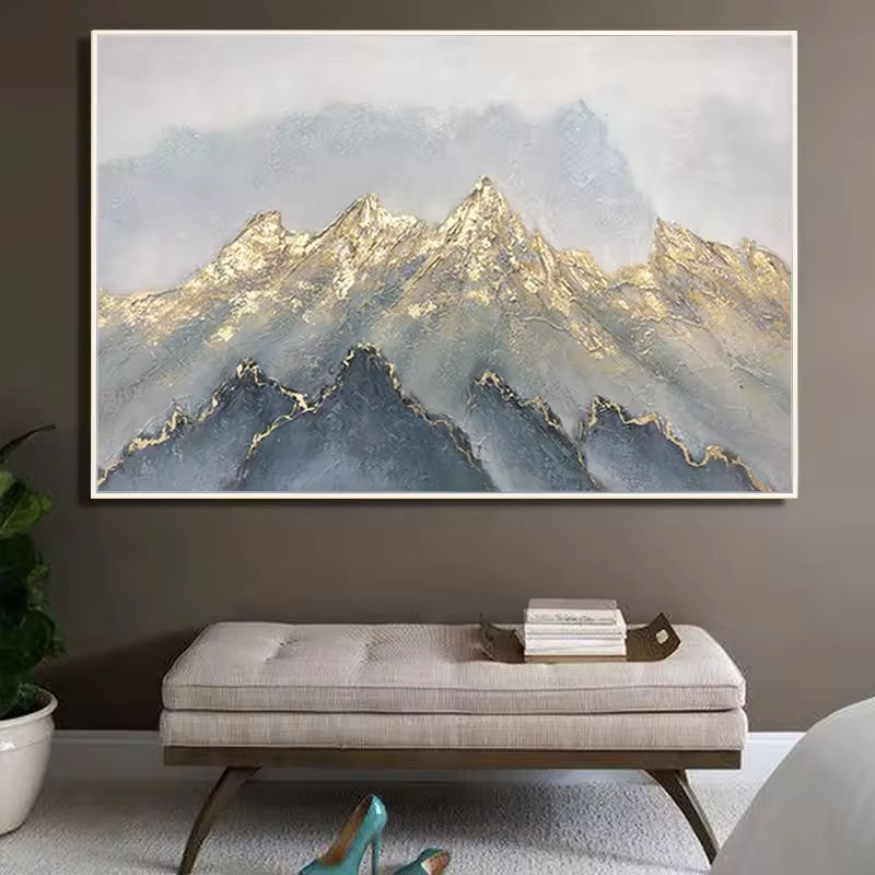 100% paisaje pintado a mano de alta calidad montaña dorada pintura Original pintura al óleo abstracta decoración del hogar pintura