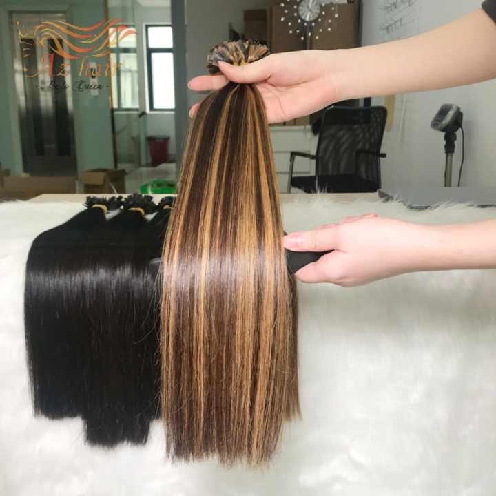 100% extensiones de cabello humano doble dibujado puro crudo Virgen sin procesar cabello crudo punta plana Remy vietnamita